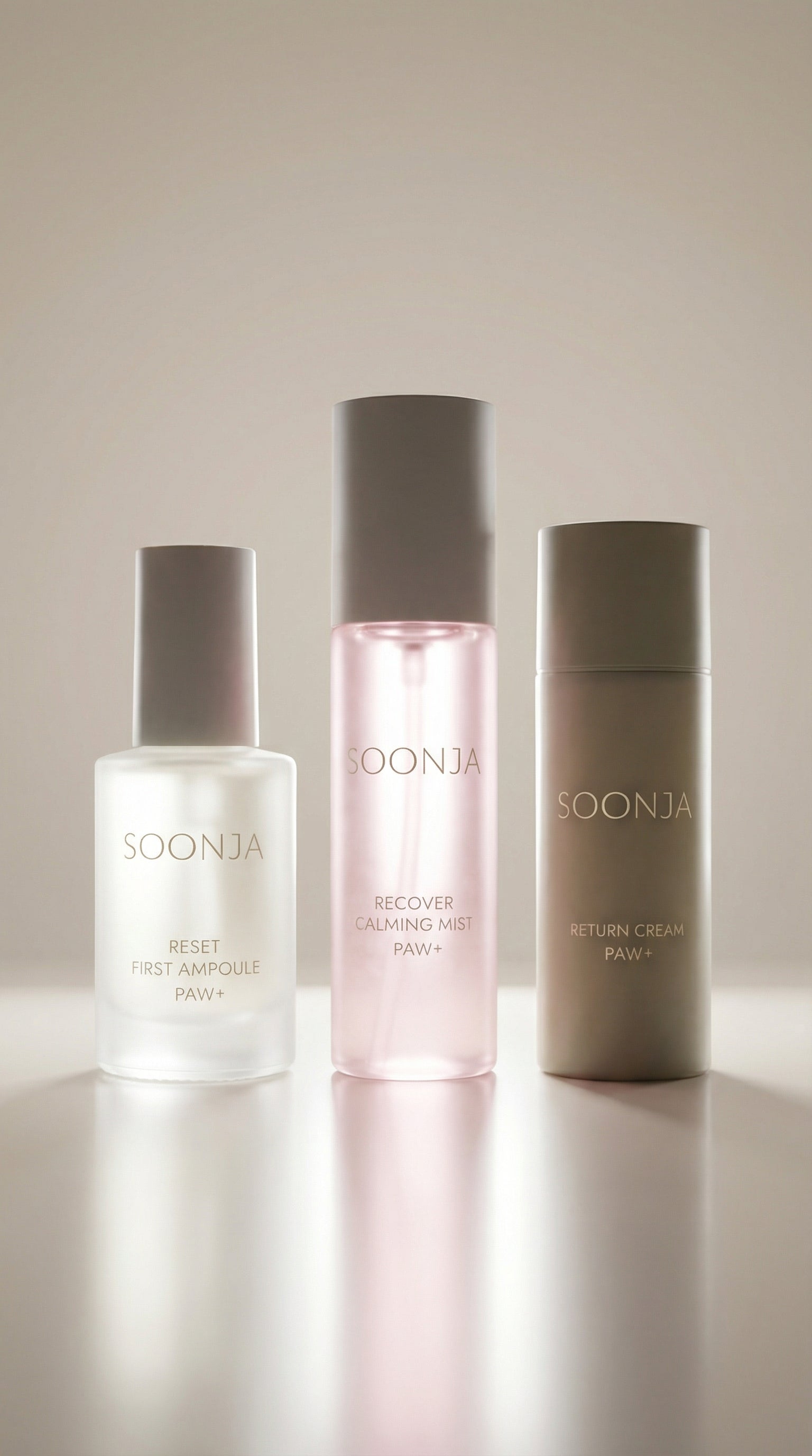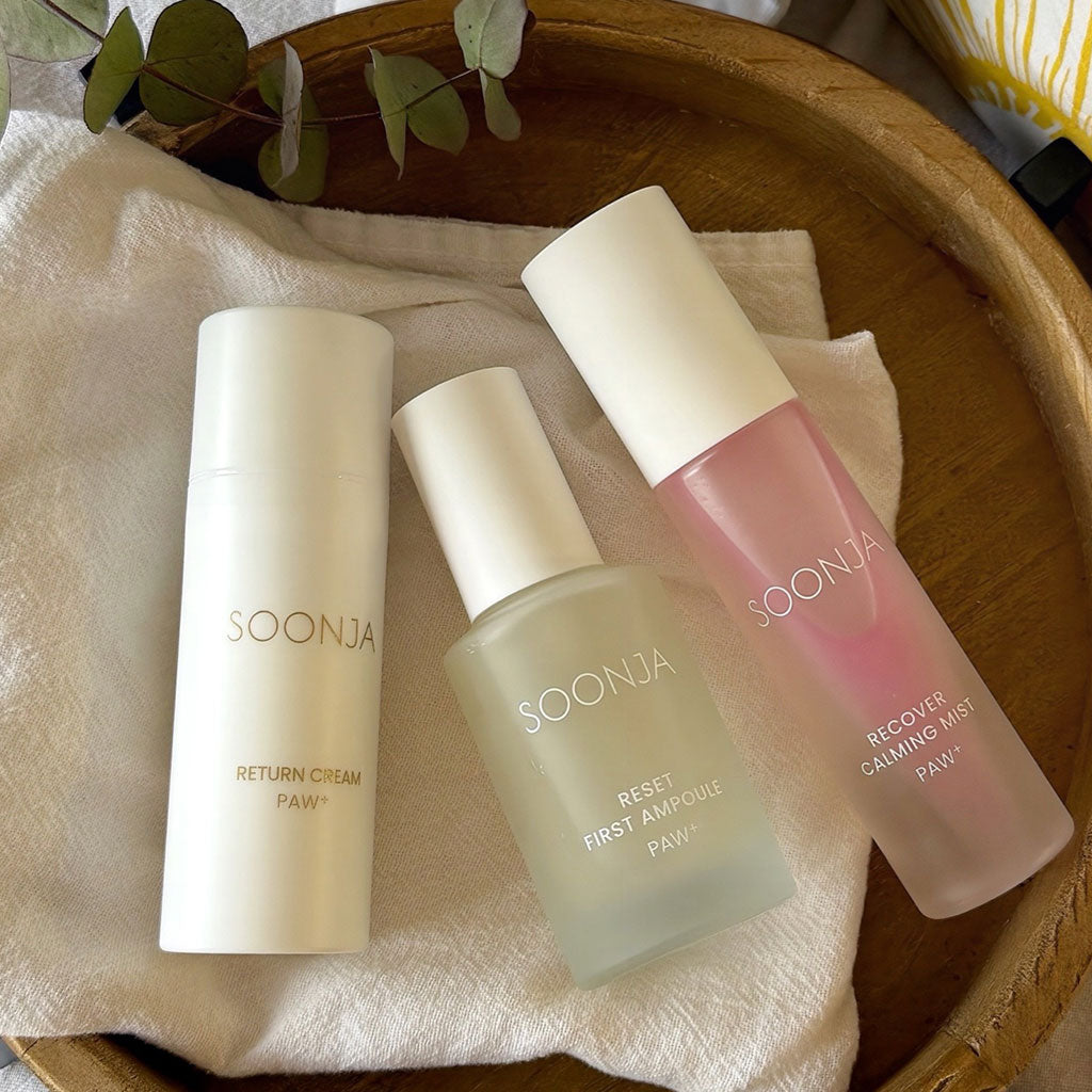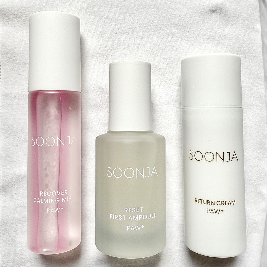 1) RESET FIRST AMPOULE → 2) RECOVER CALMING MIST → 3) RETURN CREAM